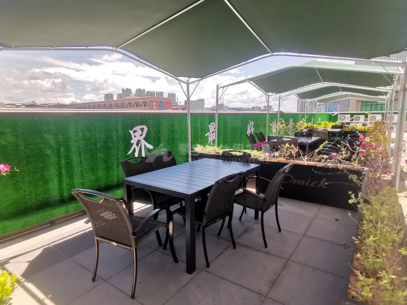 而且這種鋁製的(de)桌椅也(yě)很實用,線條簡潔大方,很(hěn)有設計感。更換(huàn)所有無用的裝飾品,將它們和諧地融(róng)入整個自然(rán)係統。