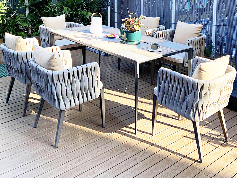 該(gāi)係列產品主要以仿木鋁(lǚ)合金輔以部分仿(fǎng)藤、還有來自南美(měi)原始森林珍貴的金柚、原木柚和當前歐洲時尚流行的包芯真空帶搭配,配(pèi)以(yǐ)時尚布藝(yì)元素,帶給消費者不一樣的休閑生(shēng)活(huó)體驗。