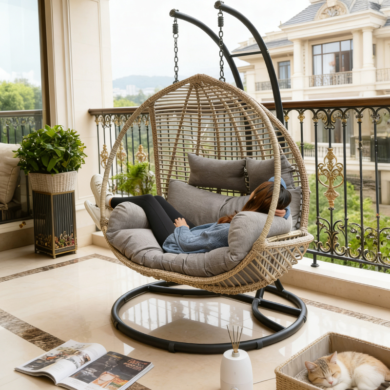 擺(bǎi)上鍾愛的雙(shuāng)人吊籃,擺放幾本翻舊的書,或是一個香薰機。這些(xiē)微小細節,才是“治愈(yù)角”的靈魂。